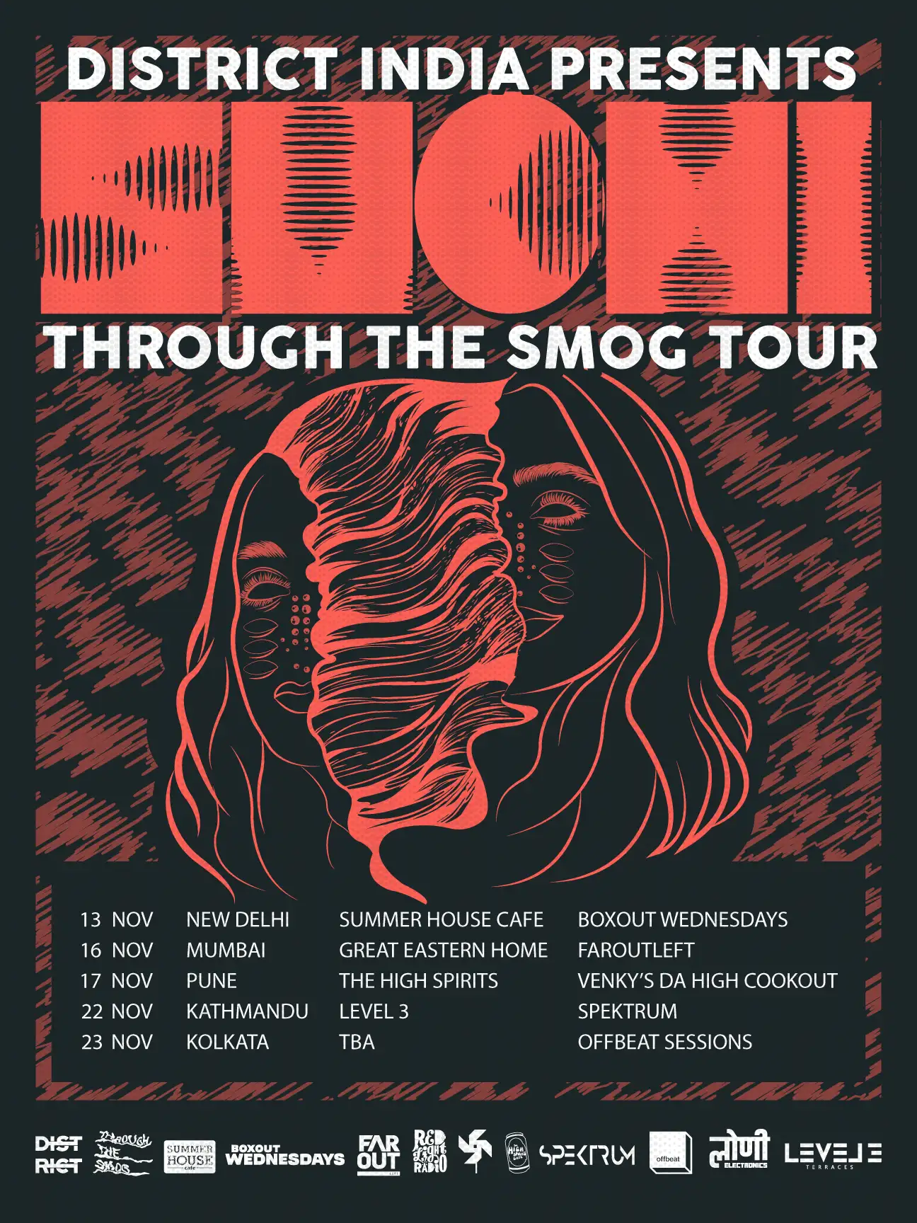 SUCHI, a globally-influenced DJ (Oslo-London-Delhi-NYC), returned to India for the third time with her eclectic blend of house, techno, electro, and acid. The tour was organized by District India.