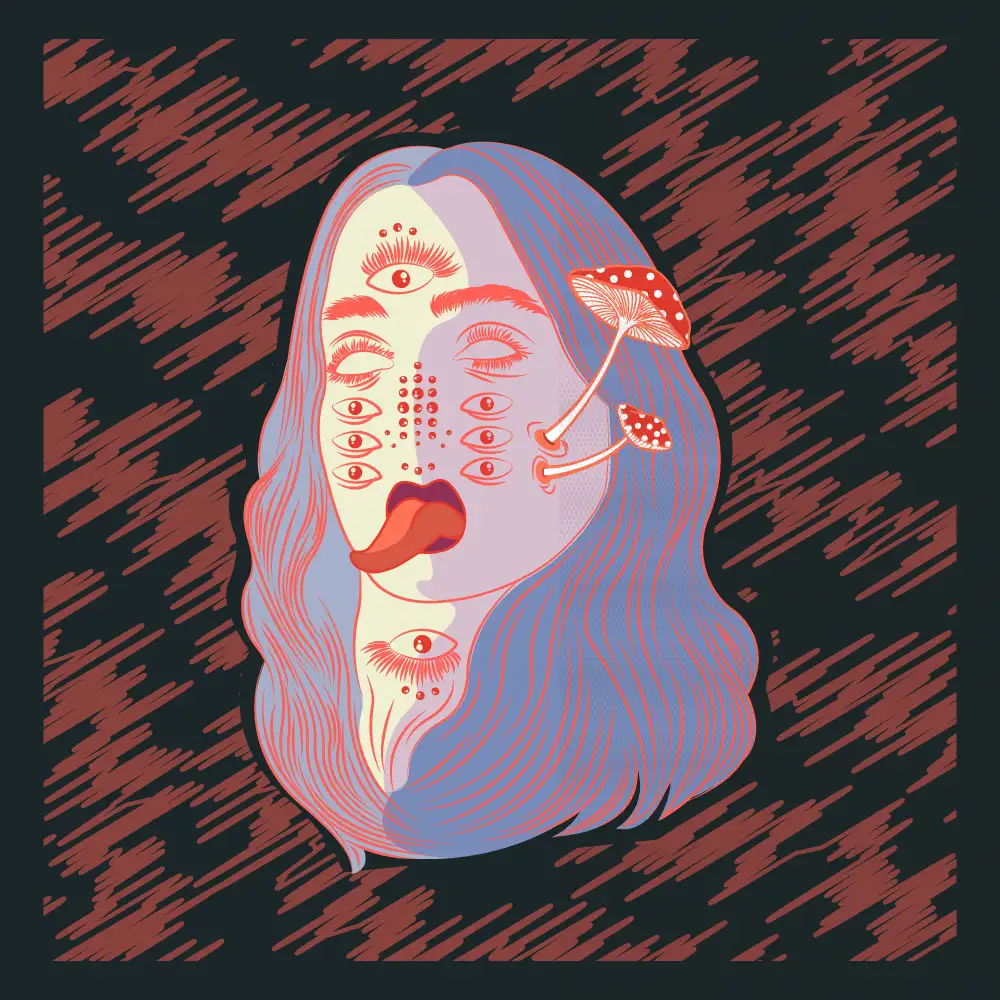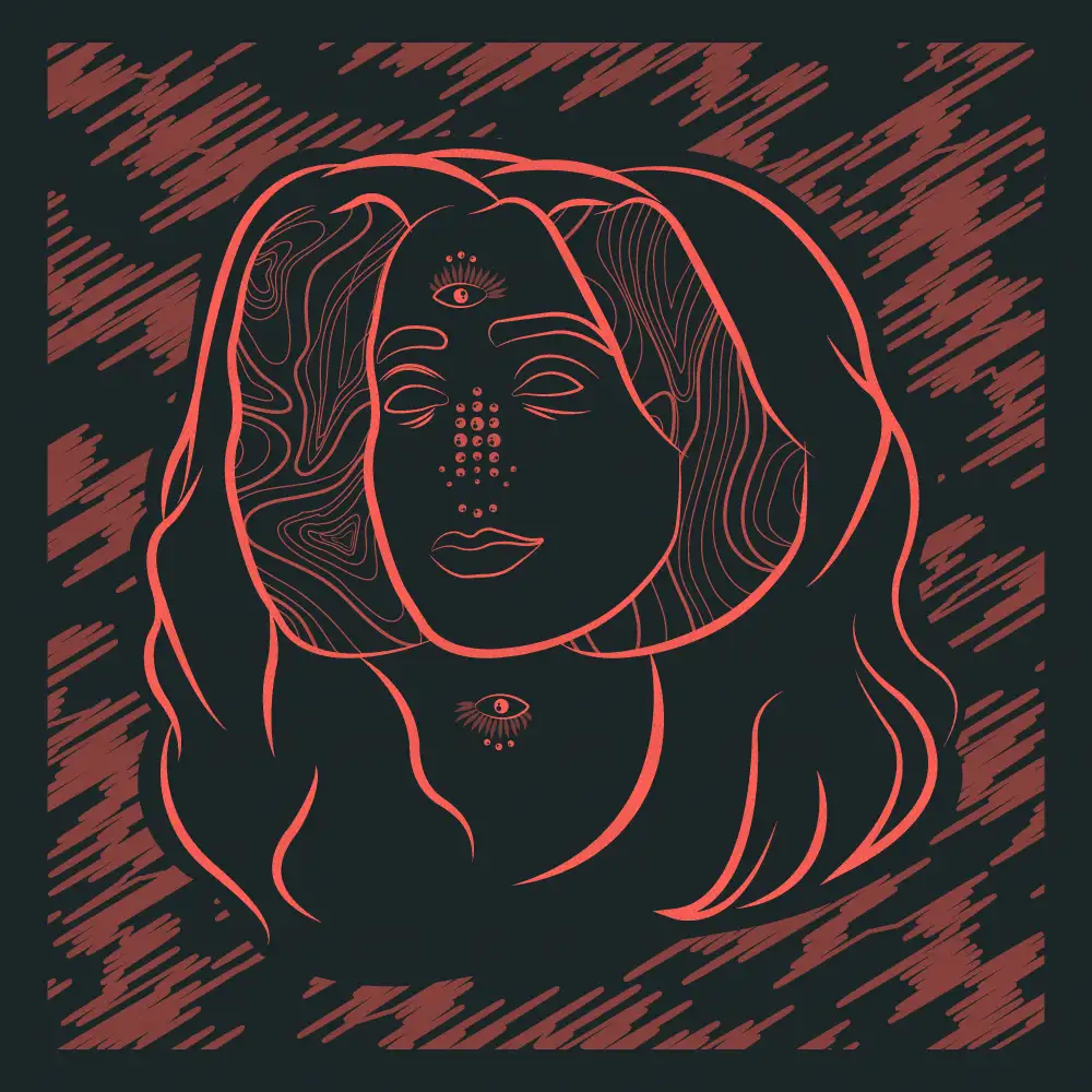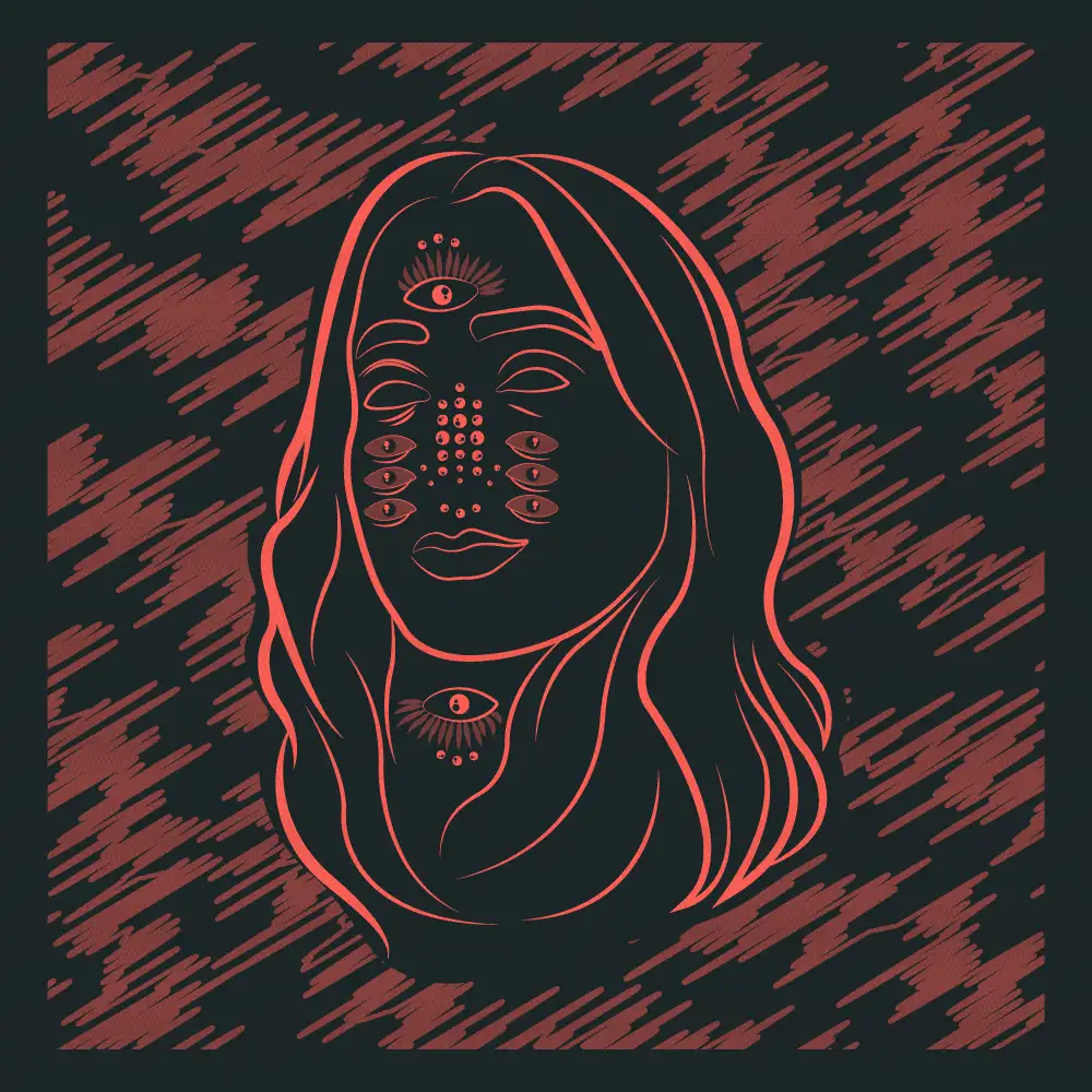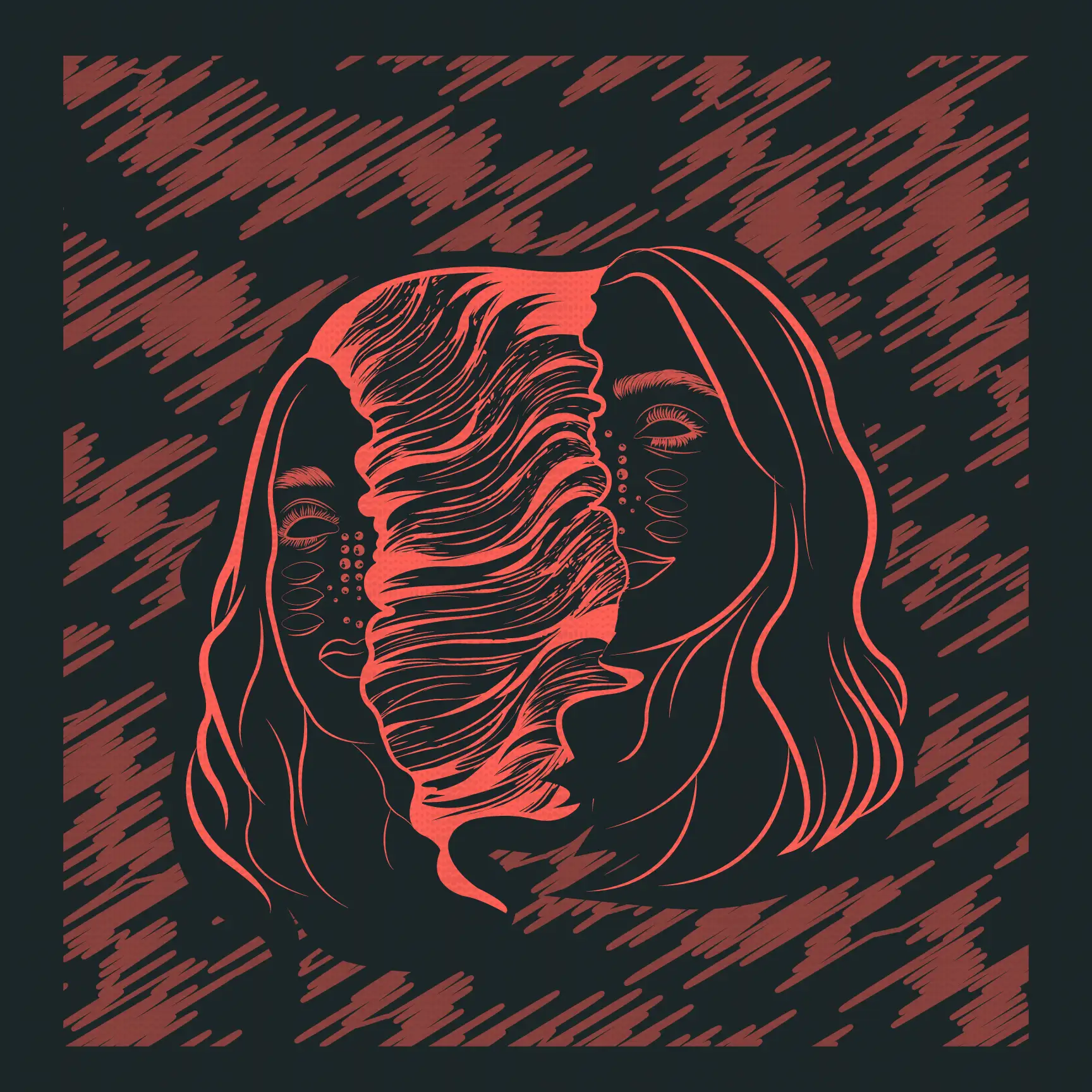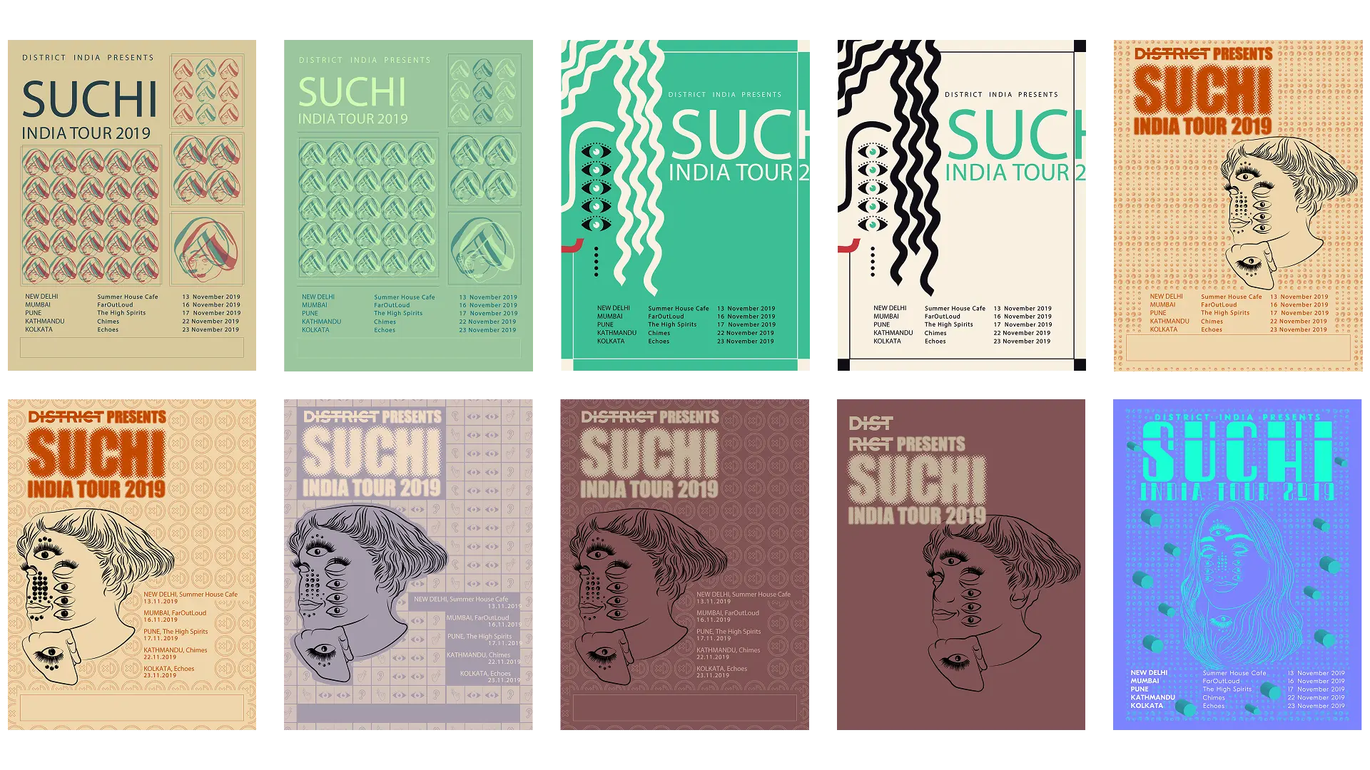 SUCHI wanted a very bold, graphic style combining rough textures and high contrast with minimal colors. The goal was to create a gritty, industrial feel. To achieve this I made a distorted portrait and rhythmic line patterns to evoke motion, noise, and feelings of underground electronic culture - blending techno aesthetics with a raw, poster-print edge.